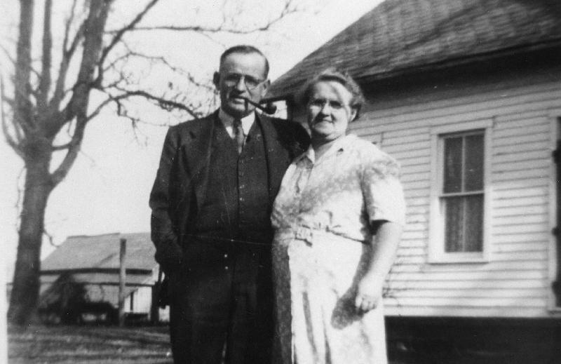 Darl with his every-present pipe and Mabel. Year would have been about 1950.