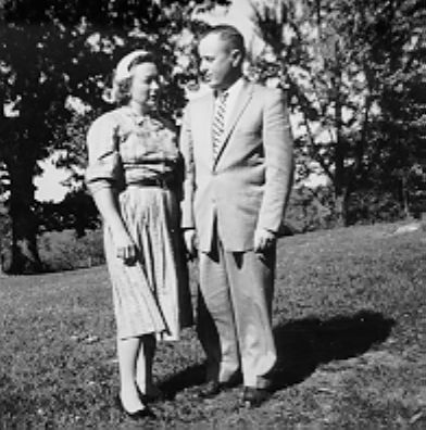 Frank and Margaret Dugan. Portrait in front yard in 1959. Probably Easter. That's when we took pictures.
