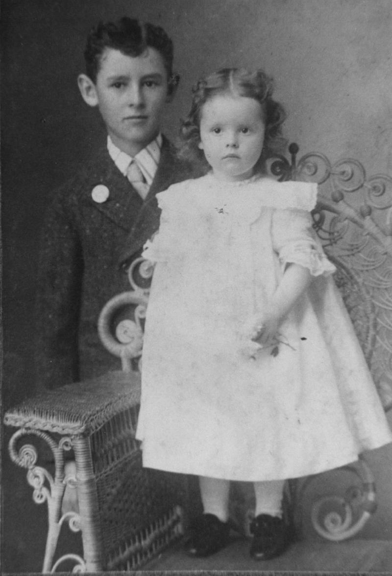 Katherine McLucas (later Root) with unknown boy. Katherine was the daughter of Emma Offord McLucas, youngest child of Alex and Hannah Offord.