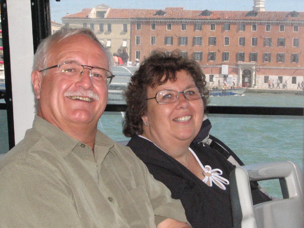 Alfons and Hermine Sillaber in boat to airport leaving Venice behind.