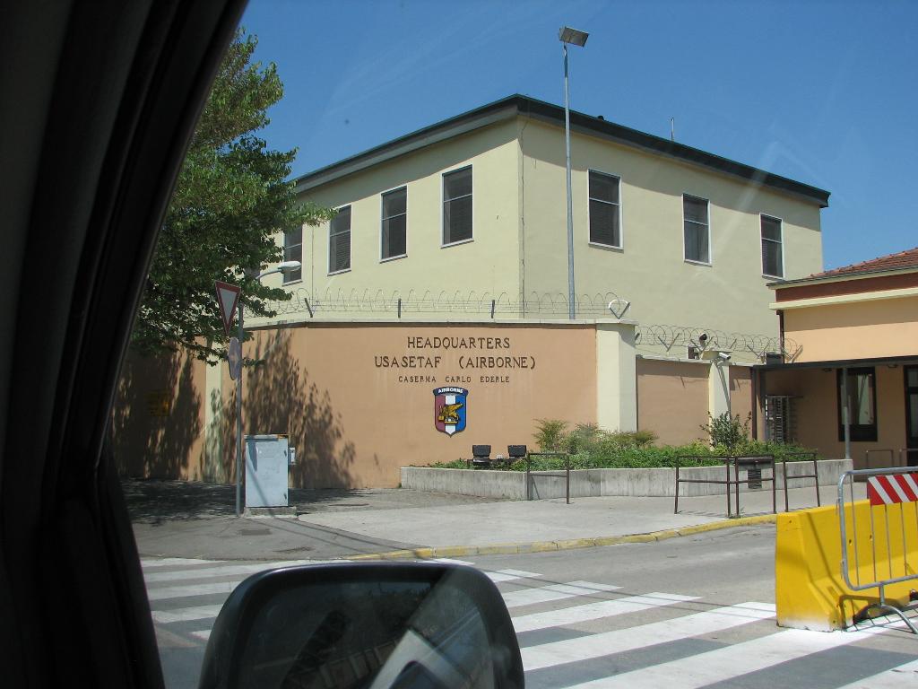 We think this is the base where Kevin was stationed before deploying to Afghanistan. From Wikipedia: The Southern European Task Force (Airborne) (SETAF) is an Army division-level command belonging U.S. Army Europe (USAREUR), based in Vicenza ,Italy . SETAF's stated mission is "On order, USASETAF (Airborne) forms, deploys, and employs Joint Forces as a Combined, Joint, or Army Task Force to achieve full spectrum dominance across the range of military operations where directed." It directly controls the 173rd Airborne Brigade