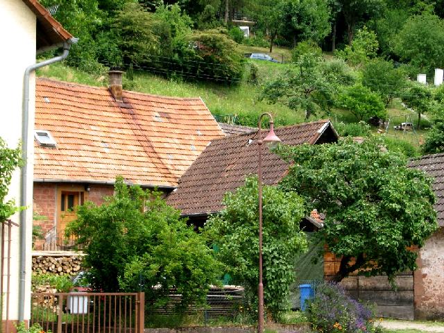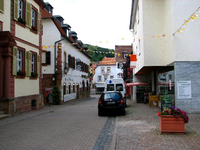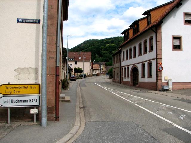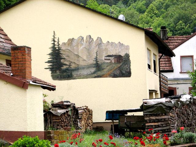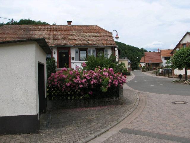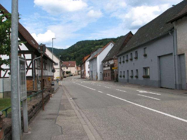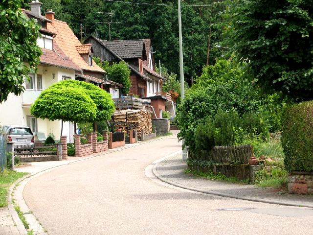 Dimbach: Heading out of town the other way. Note stack of firewood. Common sight.