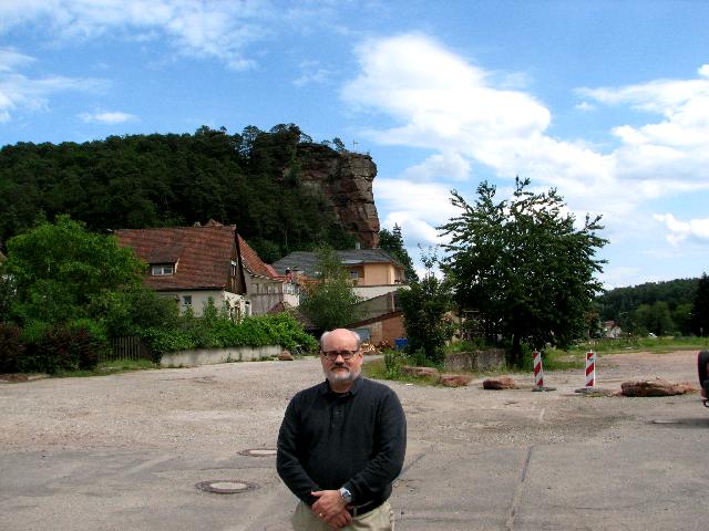 On June 10, 2011 Roger ventured into Der Wasgau region with his trusty guide and interpreter, Alfons Sillaber of Innsbruck. Being in Frankfurt for the CIRED 2011 meeting, he rented a car (a Ford with a spunky diesel that they don't sell in the US) and drove to the south to Mannheim and turned West. Passing through the wine country (Weinstrasse) we entered the tree-covered hills of the Wasgau and into the city of Annweiler. We inquired about Broedels at the town hall and the archives and got a little information. Then we moved on to Sarnstall where we knew the Broedels were in 1871 through 1899. After walking around the almost deserted town, we casually asked a fellow apparently waiting for his wife to get off from the cardboard factory if he knew any Broedels around Sarnstall. He said there were none, but Wilgartswiesen was full of them. He told us how to find one who owned a lumber store -- Gerhard Broedel. His son Juergen, who is the mayor, came later as we were about to leave and he told us about his young son Tobias (Toby). Gerhard had a family book with lots of information and he graciously made us a copy. While we waited for the copy, we toured Dimbach where Margaret Stoffel was apparently from. A very small little town nestled in the mountains. We did some other touring around looking at castles and rock formations as well as visiting some of the quaint towns along the way. Then we headed back to Frankfurt where we made it safe and sound. A great adventure!