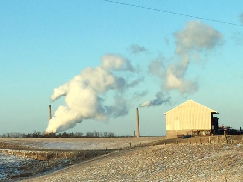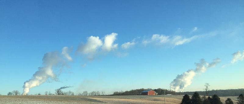 This gives you an idea how cold it was in February. On the left is the plume from the Muskingum River coal plant. On the right is one of the