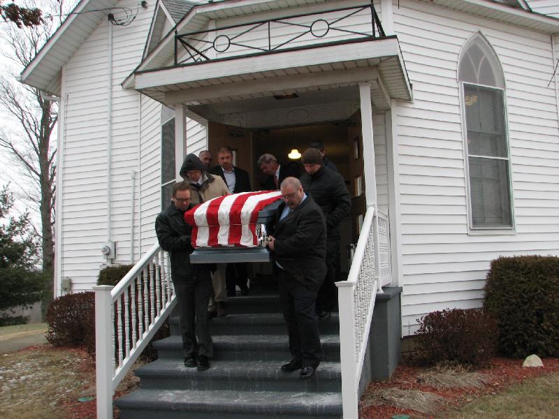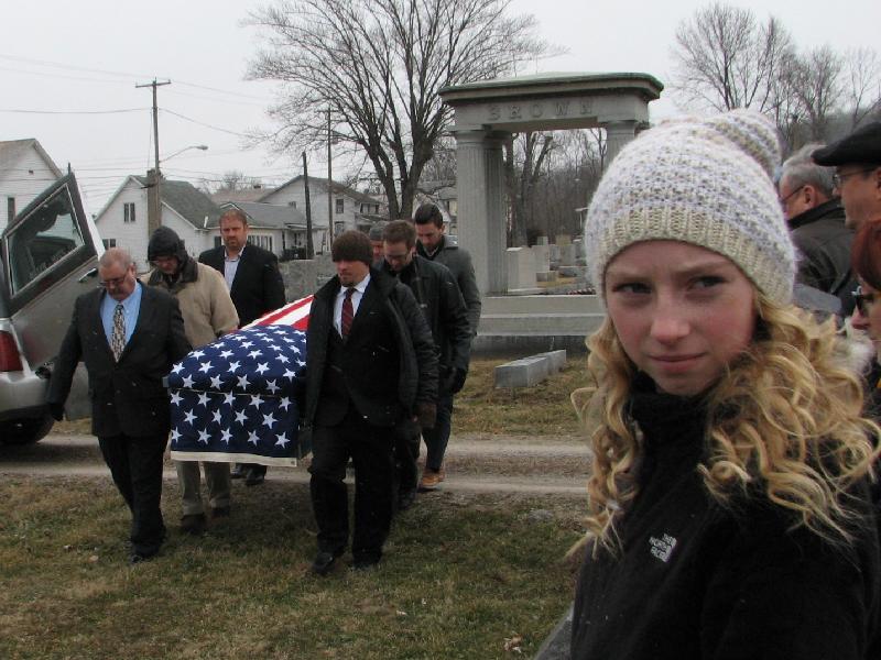Carrying the casket from the hearse to the gravesite. Pallbearers, clockwise from front left: Jim Kinney, Steve Kinney, Zach Dugan, Nathan