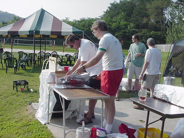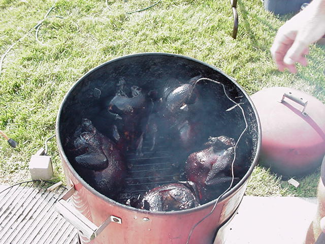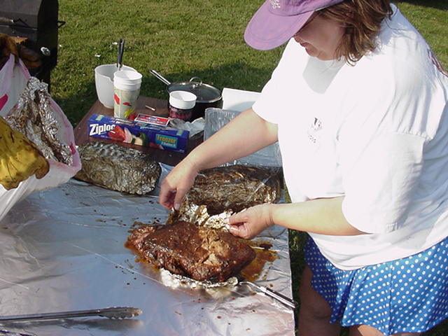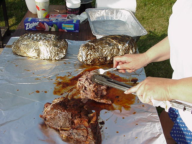 Taking the pork out. Smoke gets in your eyes .... Photo (44KB)