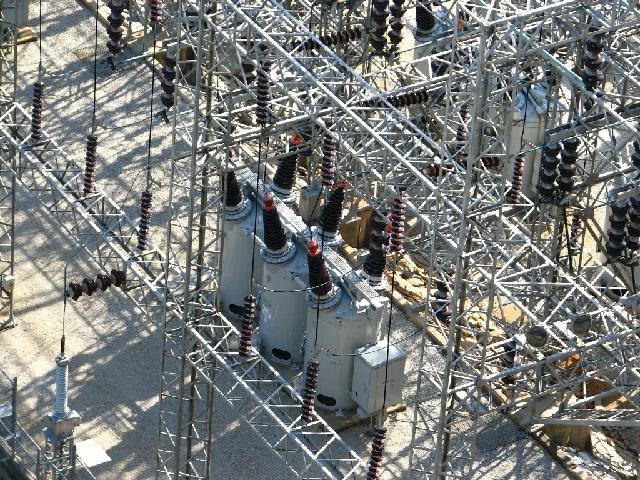 the outgoing line in this case, which I'm guessing is 92 kV for what is known as a 161 kV line. Obvious, huh? One term for the metal structures