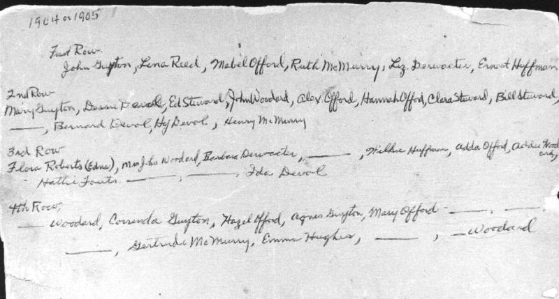 Key to group photo in handwriting of Mabel Offord Dugan.
