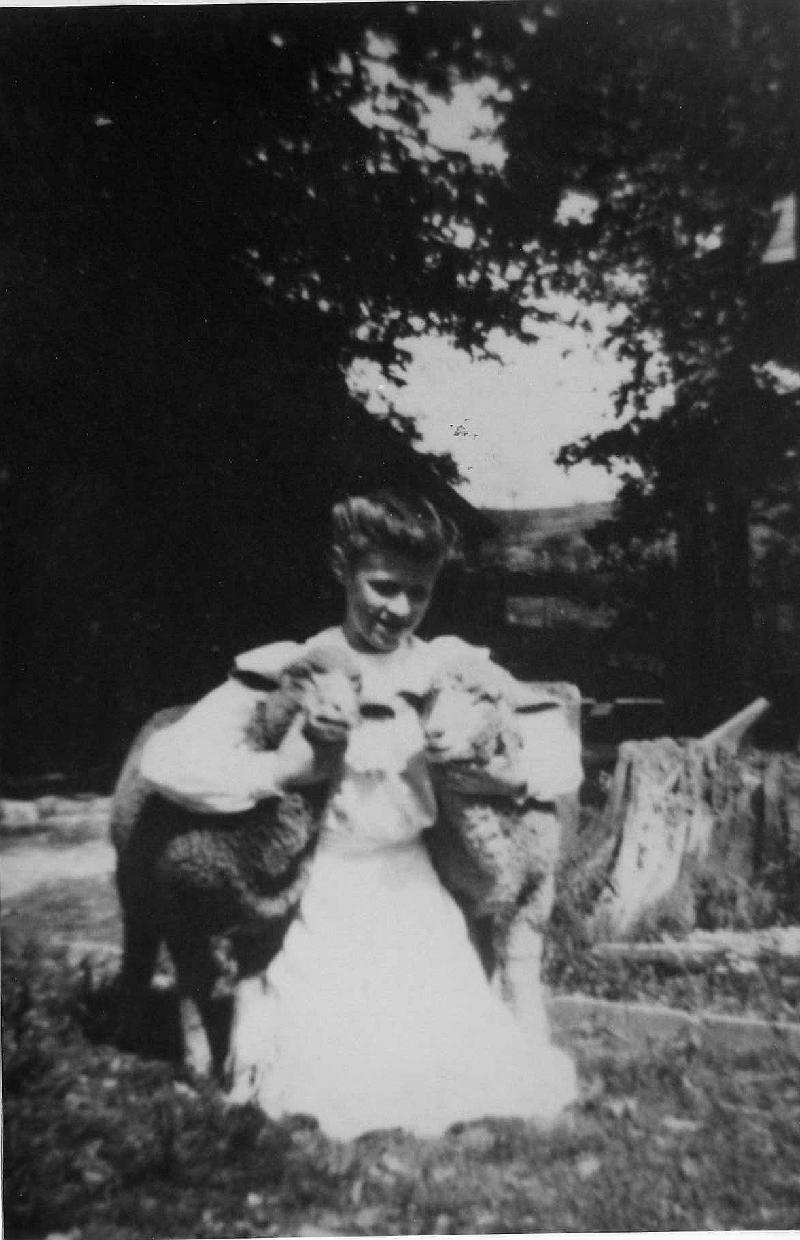 Mabel Offord with Merino sheep. Probably about 1905.