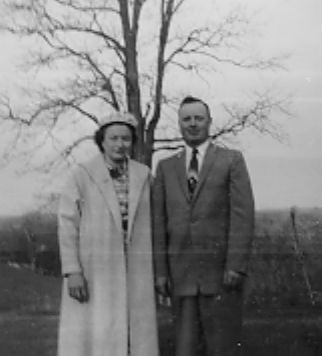 Frank and Margaret Dugan dressed up for Easter 1957 -- at the farm.