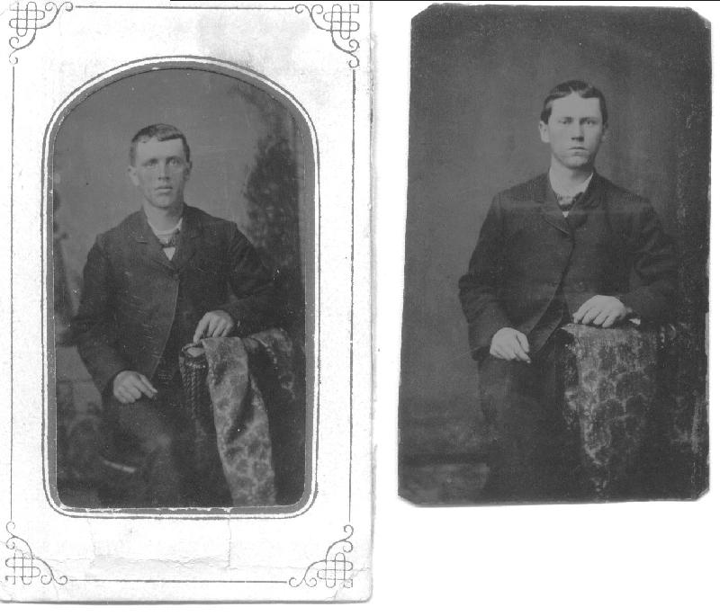 Edward and Frank Offord as young men. From tintypes. Taken by J. T. Ayres, McConnelsville. This is the only known photograph of Edward. We have recently [2008] discovered that Edward was a Watkins representative in Johnson, Co., KS. He lived in Lenexa, KS near Kansas City. He was married to Mary Elizabeth Offord and had one daughter, Beulah, who married Howard Earnshaw.