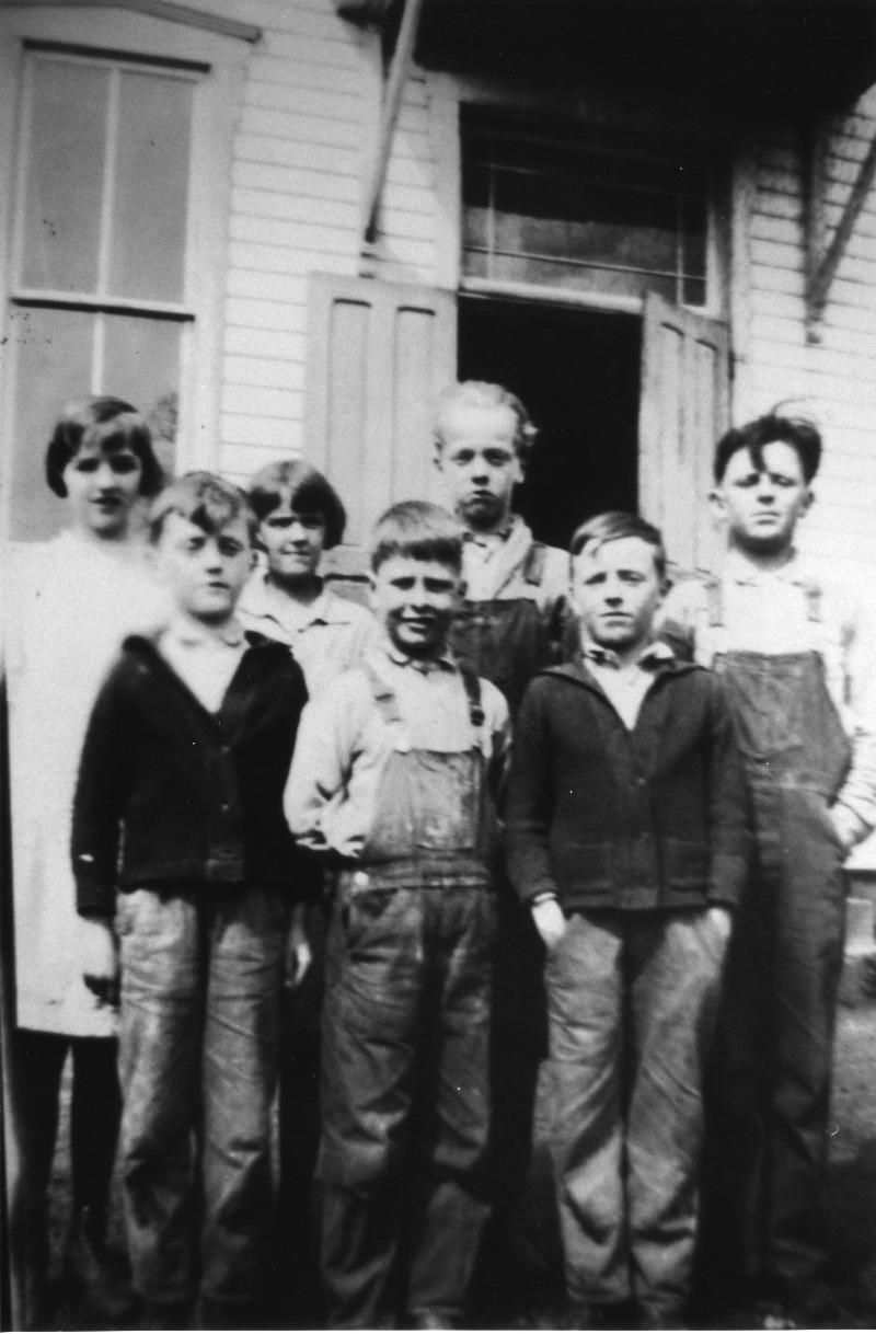 Harmonic Hill school. Wayne Dugan 1st row left; Frank Dugan 1st row right. Cousin Don McCormick behind him.