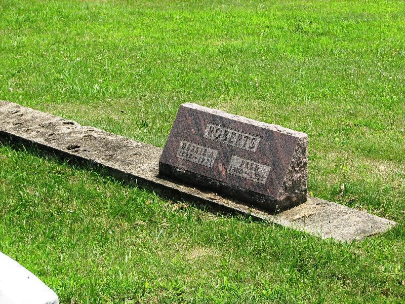 Fred and Dessie Devol Roberts marker at Wesley Chapel Cem. Note sheep footprints on concrete footer. Frank Dugan's sheep got out while the concrete was still wet.
