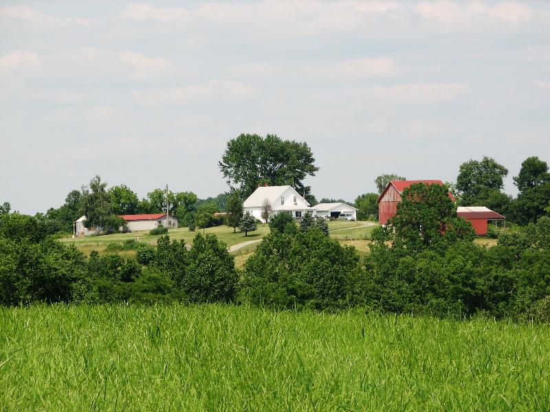 Farm buildings as seen from the hill above Tom Dugan's (Old Roberts place). 2006. Alexander Offord built the main house and the red barn in 1881. Other buildings are more recent.
