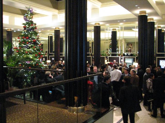 People waiting for dinner in the foyer.