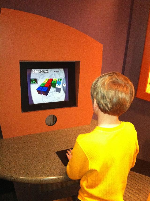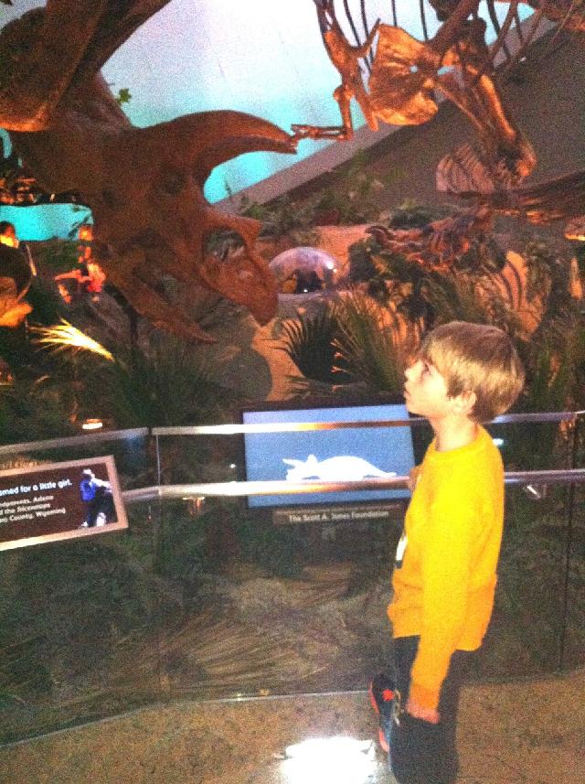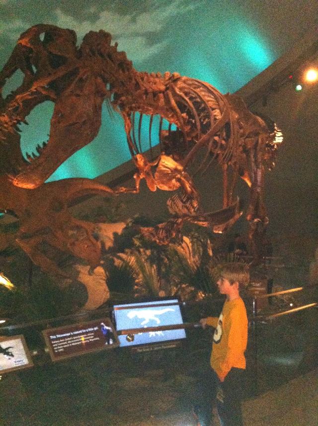 Peyton in his element in the Dinosaur display in the Indianapolis children's museum. He told the staff all about the dinosaurs and answered most