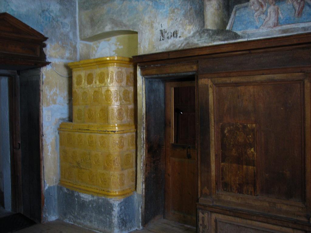 Porcelain heater. Entrance to bath to the right