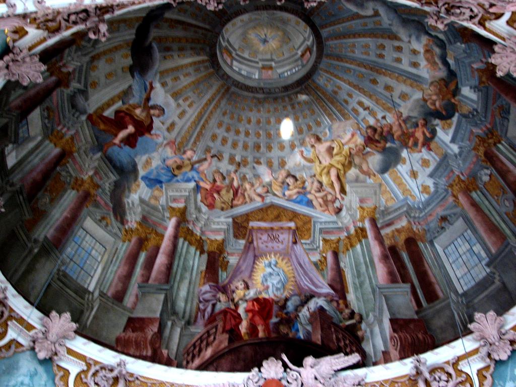 Ceiling is painted to look like a dome, but is flat