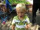 Waiting for Larry and Bob. Peyton eating his T-Rex cookie
