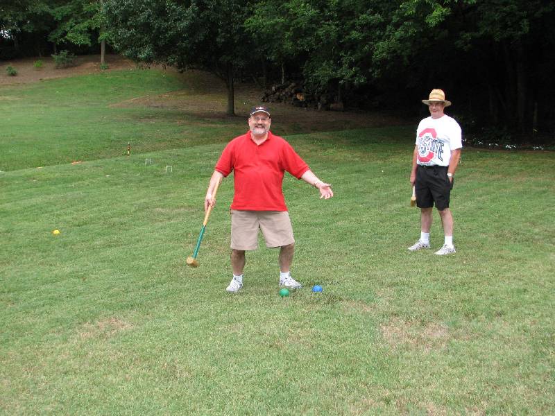 Roger clowning for the camera. About to knock brother Jim's ball into oblivion.