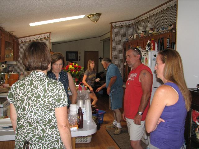 Getting ready for ice cream at Donnie and Vicky's. Betty (back to camera), Peggy, Ronnie, Bethany. Kathy and Donnie in background.