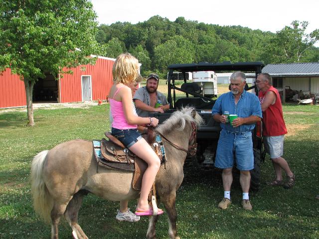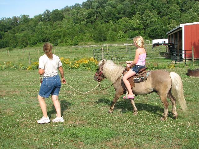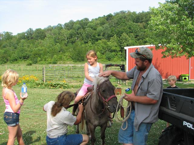 Pony rides. Samantha Schumann, Vicky Wagner, Anna McIntire, and Brandon Wagner. Peyton Schumann looking on.
