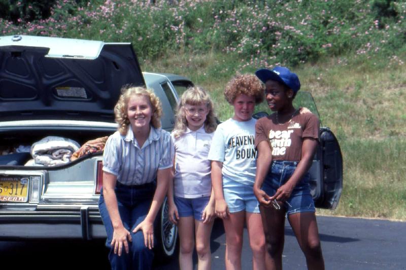 Debbie Dadisman, Kathy Dugan, Krista Liddle, Renee Johnson. Getting ready to go to camp in the Crossroads parking lot.