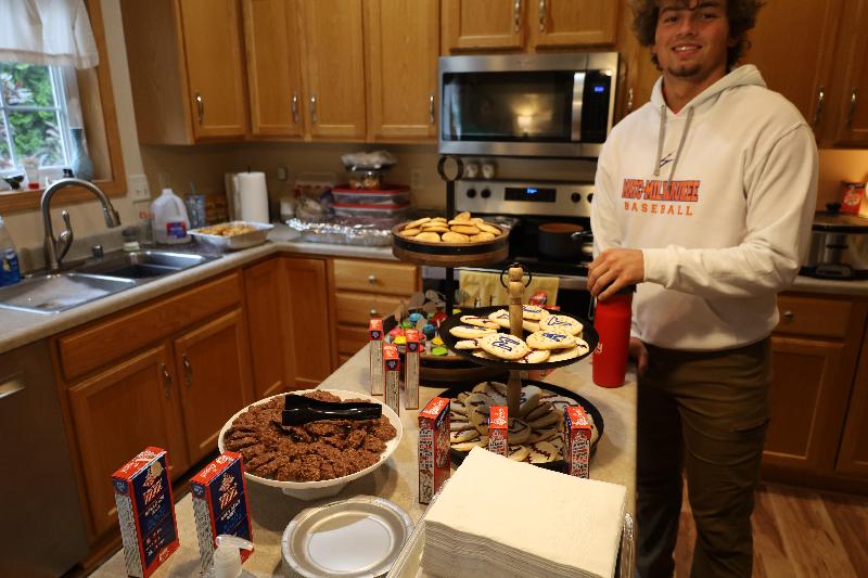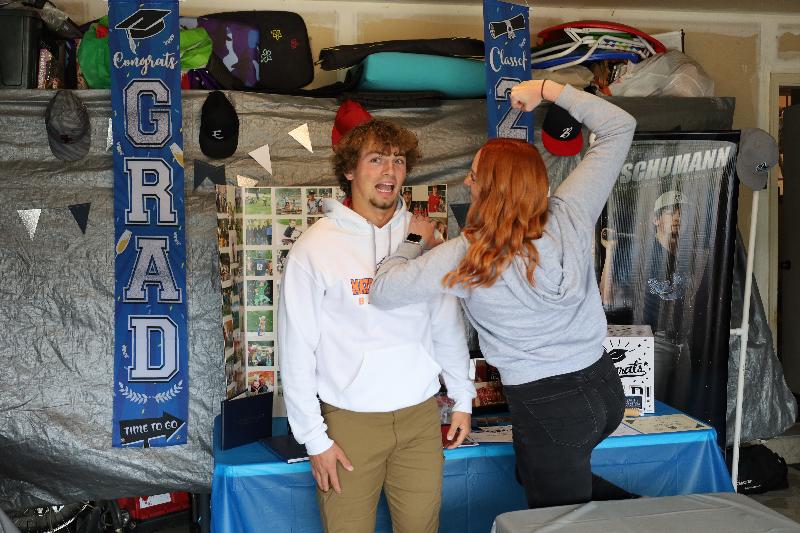 Garage all decked out for graduation party. (It was chilly)
