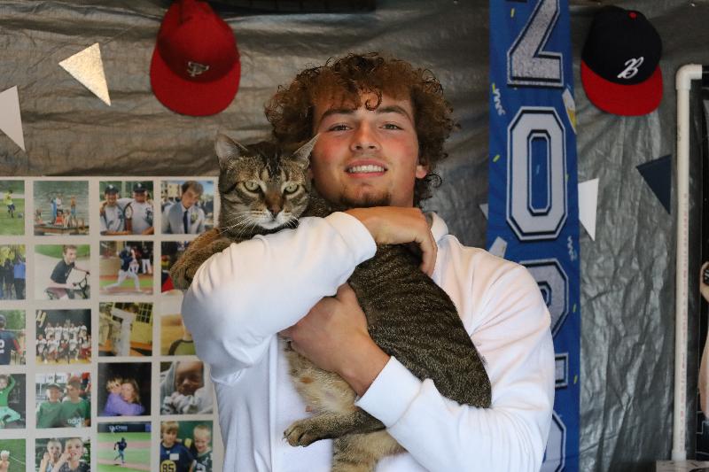 With his favorite cat.