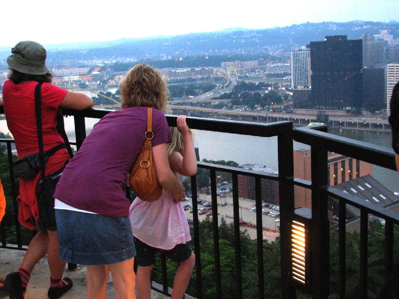 Mommy holding on to Sam looking down over the big city.