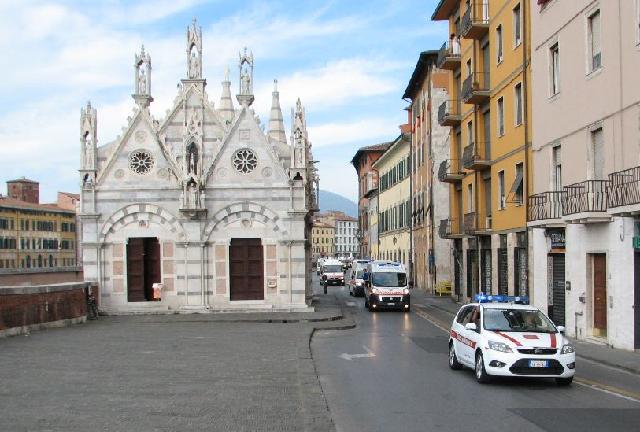 Parade of emergency vehicles. Best we could figure is that they were announcing the beginning of the Italy v England soccer match.