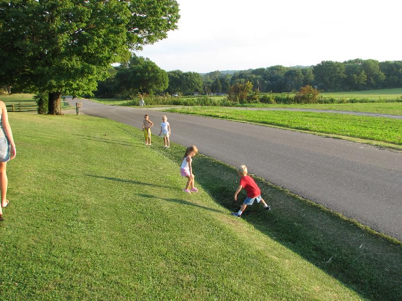 Straddling the ditch. Wouldn't guess he was a boy ;-)