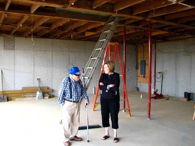 Grandpa and Peggy inspecting the new basement at the farm.