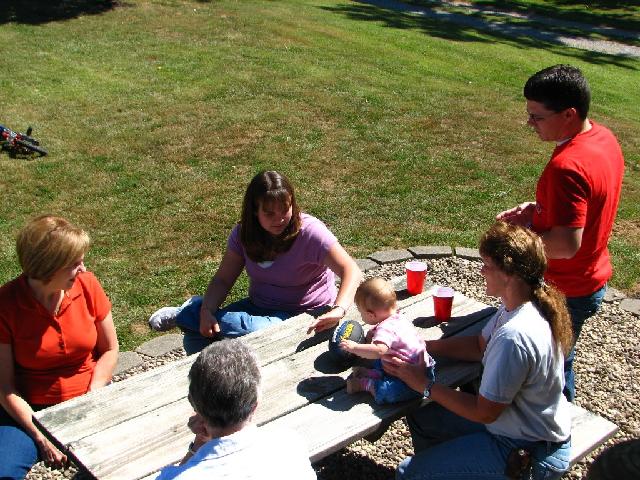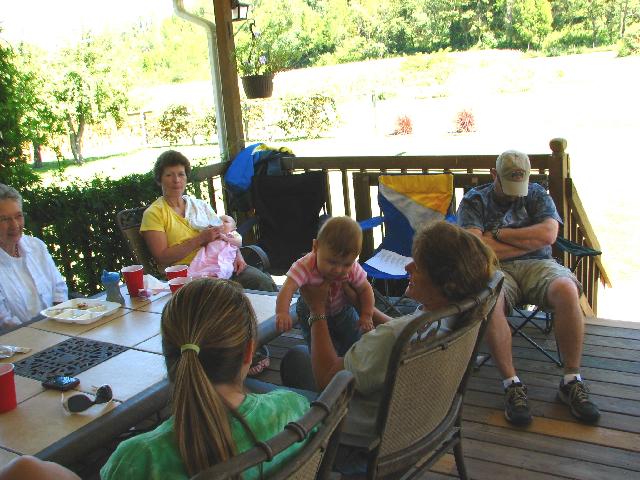 Over Labor Day weekend, we travelled to Ohio to check in on our families. We picked up Dad and took him out to the farm to see the progress that Zach was making on the house. On Sunday, we had a picnic with Peg's family at Betty and Dennis Thatcher's house in Waterford. Many of the family were represented there. Later, we went back up to McConnelsville to the Fairgrounds and had a cookout with Dad along with Tom and BZ's clan.