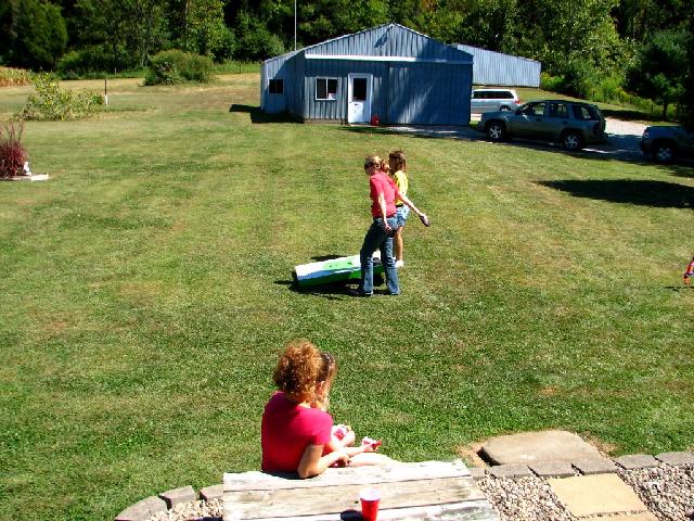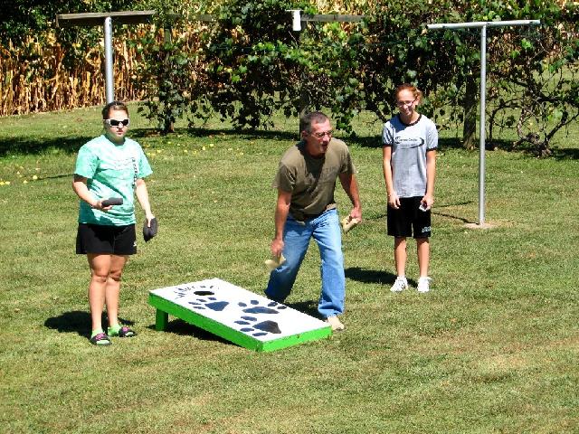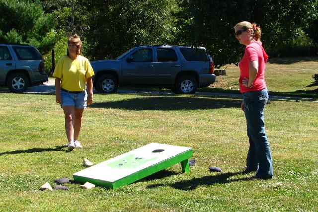 Tammy (foreground). Andi and Grace with the cornhole game.