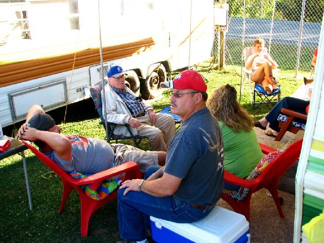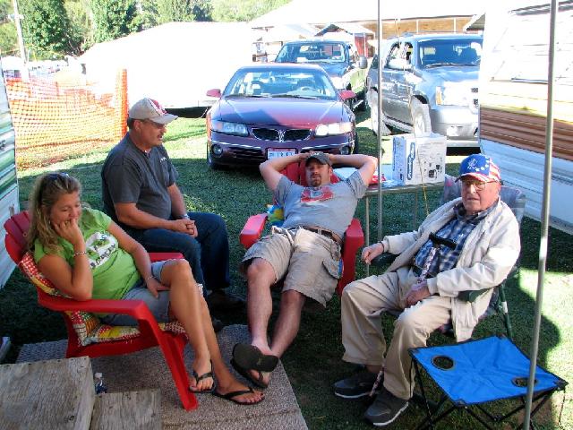 Cookout at Tom and BZ's camper at the fairgrounds prior to the Morgan County Fair. Melissa, Tom, Zach, and Grandpa