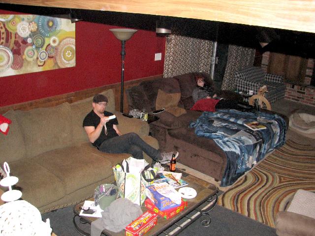 Greg and Meredith lounging in the TV viewing room