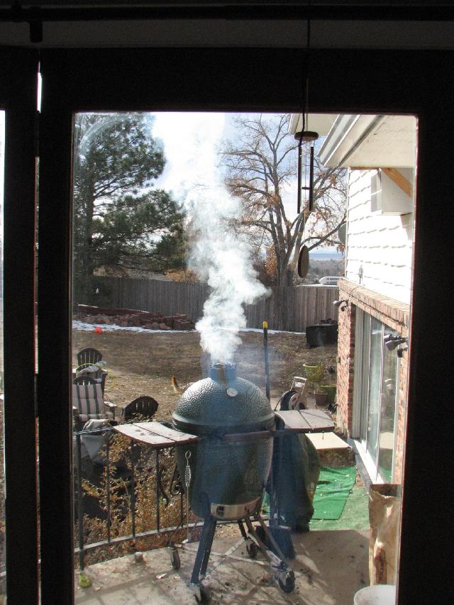 The turkey smoking away.