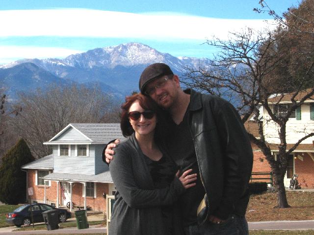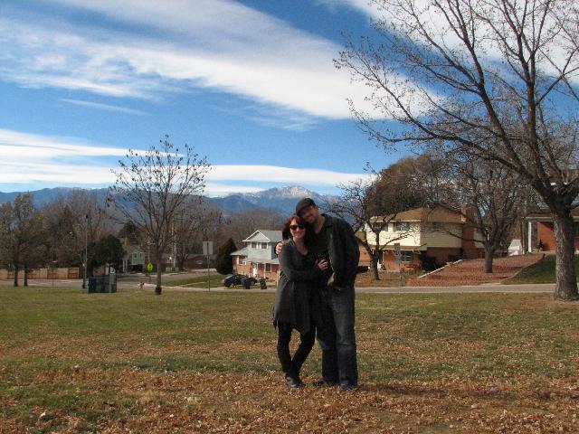 Greg and Meredith in the park down the street in front of Pikes Peak