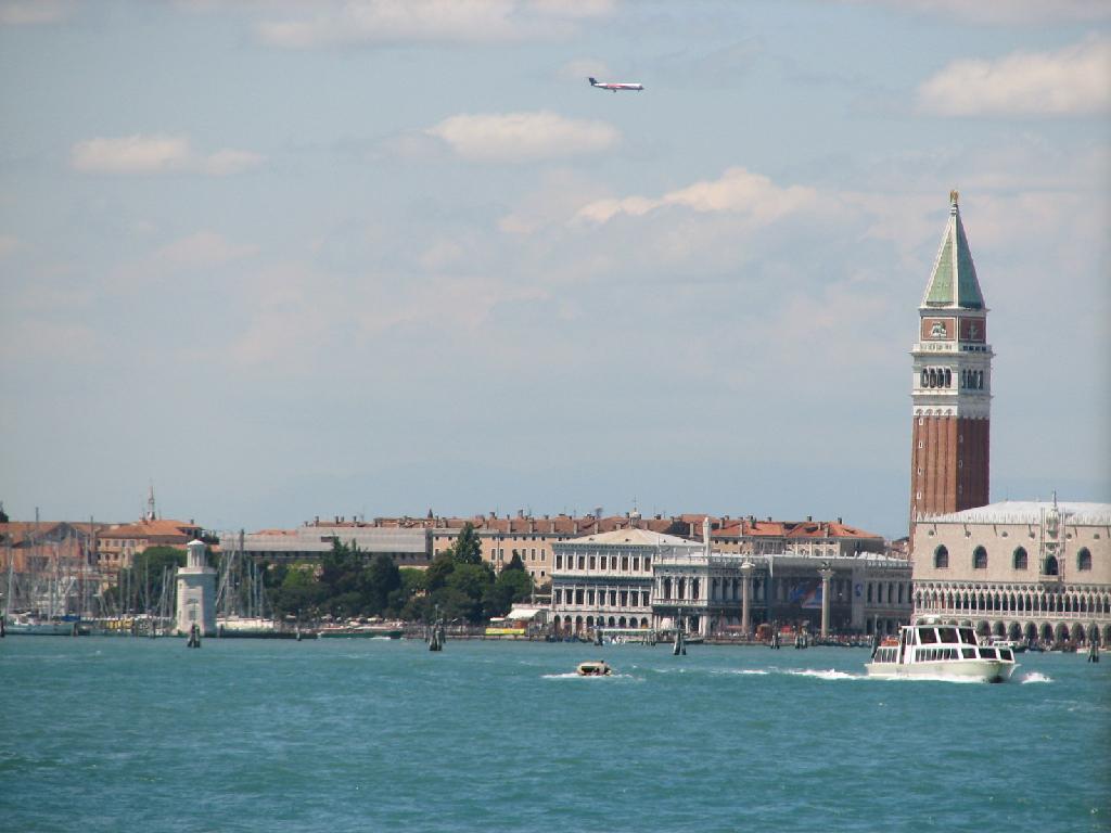 First glimpse of St Mark's square. Caught an airplane coming in.