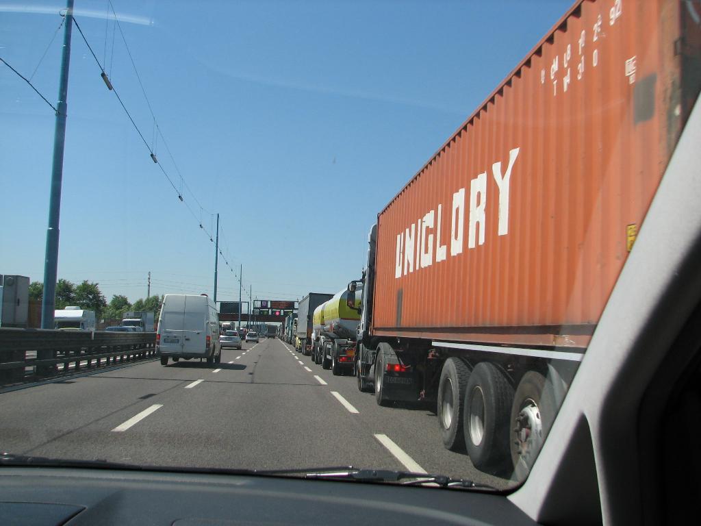 Traffic jam outside Venice. Trucks allowed only in right lane.