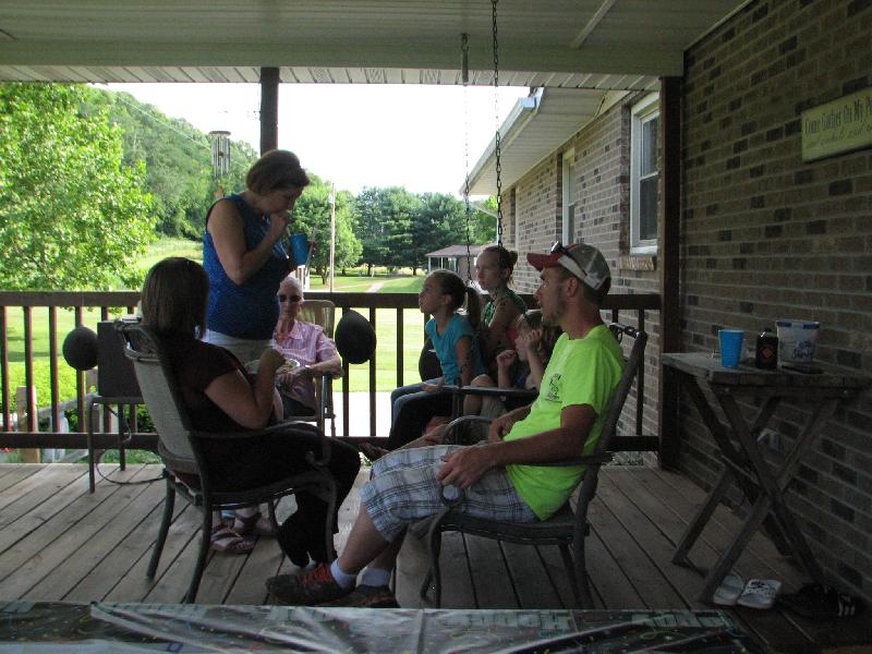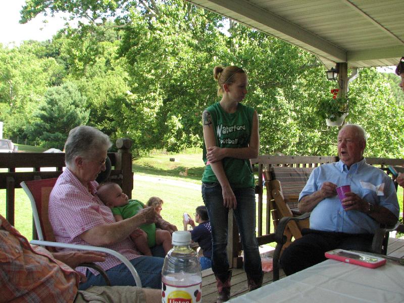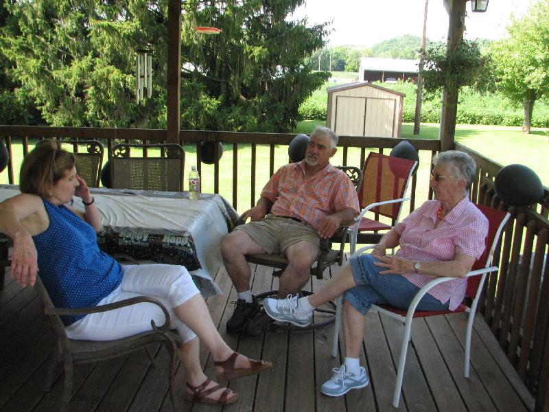 Peggy, Donnie, and Grandma Jean on the porch at Betty's