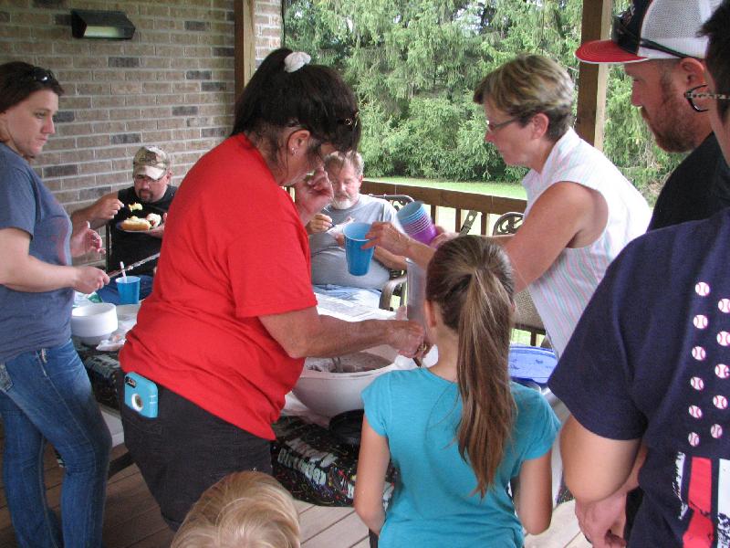 Family friend Kay Pugh heard there was ice cream and stopped in.