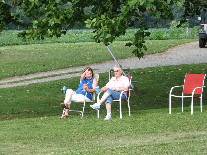 Peggy and mom umpiring from the sidelines (peanut gallery)