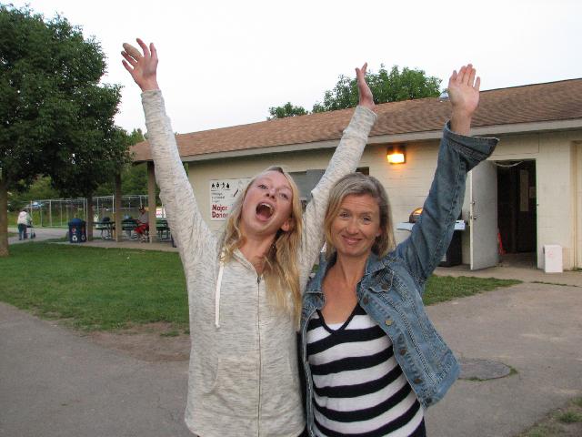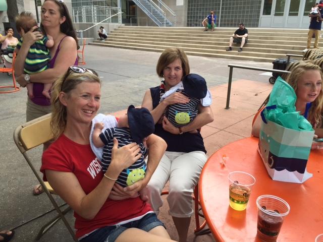 Meeting Marilyn's twins at the U of Wisconsin. Vendor said he should have charged me double for my ice cream because I was wearing an