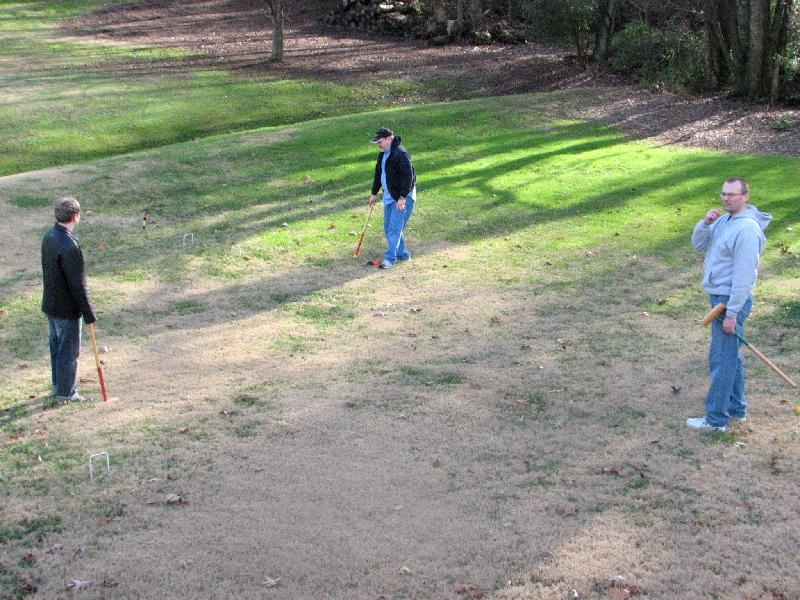 Croquet lesson in progress. I think the photographer asked "Who's winning?" Dumb question.