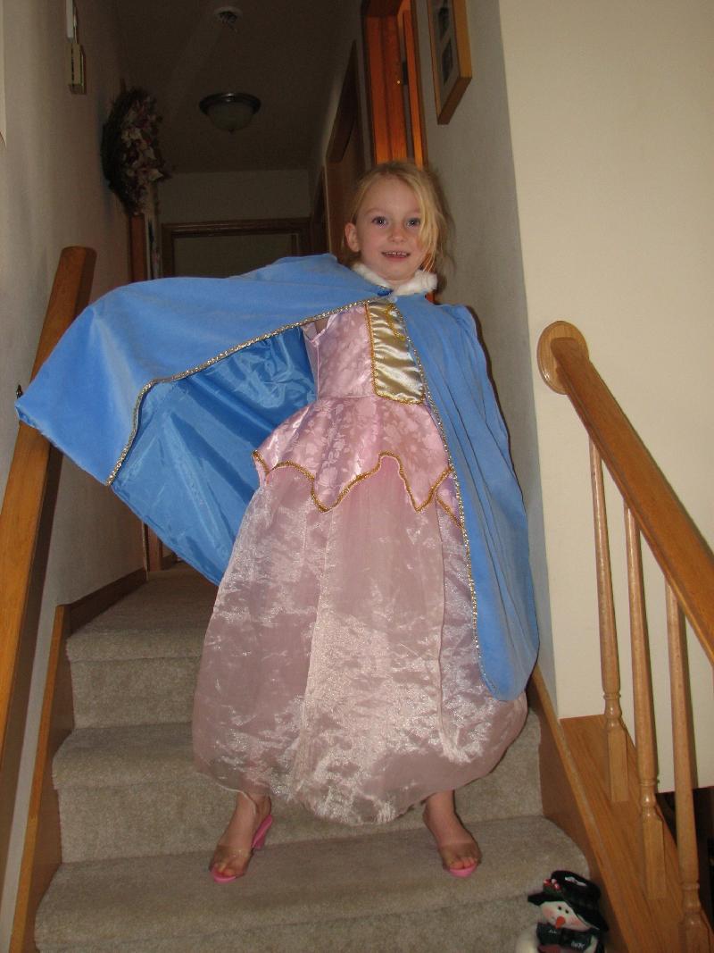 Sam modeling princess dress she got for her birthday.