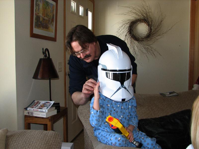 Uncle Curt adjusting the Storm Trooper helmet