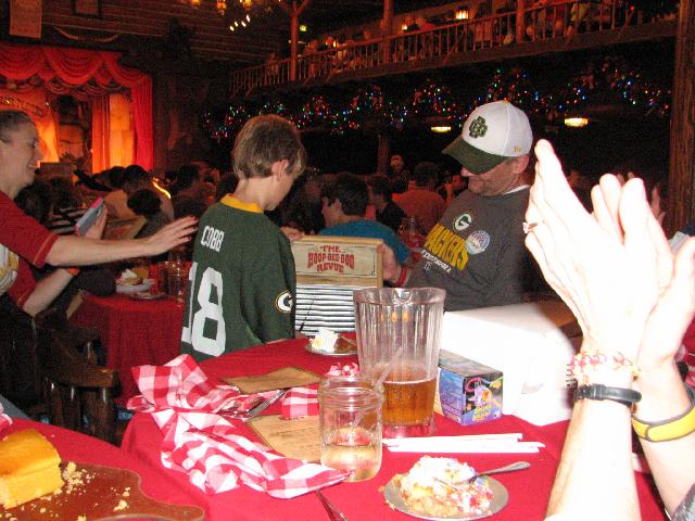 This year our family Christmas consisted of a memorable bonding experience at Disney World in Orlando. Kathy, Scott and grandkids, Samantha and Peyton traveled to Knoxville and after opening some gifts there on the 24th, rode with us to Orlando on Christmas Day. We were joined there by Scott's mother, Nancy and stepfather Pat Burneske who drove down from Milwaukee. Greg and Meredith flew in and got there about the same time. We all stayed in a couple cabins at Fort Wilderness. Meredith's parents, Tom and Marsha Clingan, brother Nathan and son Caden flew in also and stayed at another hotel. These photos show highlights from the Magic Kingdom, Epcot, and Universal. Roger came down with a bug and did not go to Hollywood Studies and Animal Kingdom, so there are no photos from there yet. But this should give you some idea of the Great Adventure we experienced. We finished off by celebrating Scott's 42nd birthday at the Hoop De Doo Revue in Fort Wilderness. Happy New Year!
