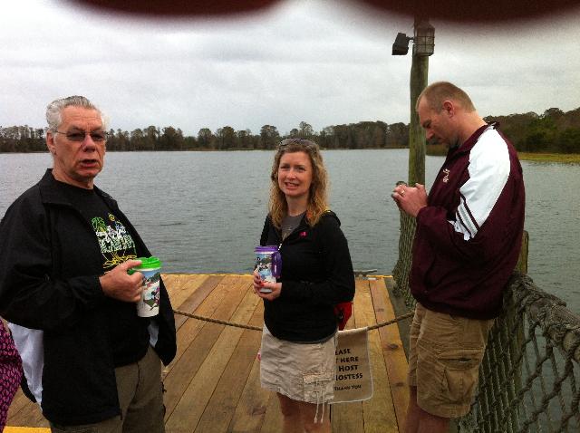 Pat, Kathy, and Scott waiting for the boat to the Magic Kingdom